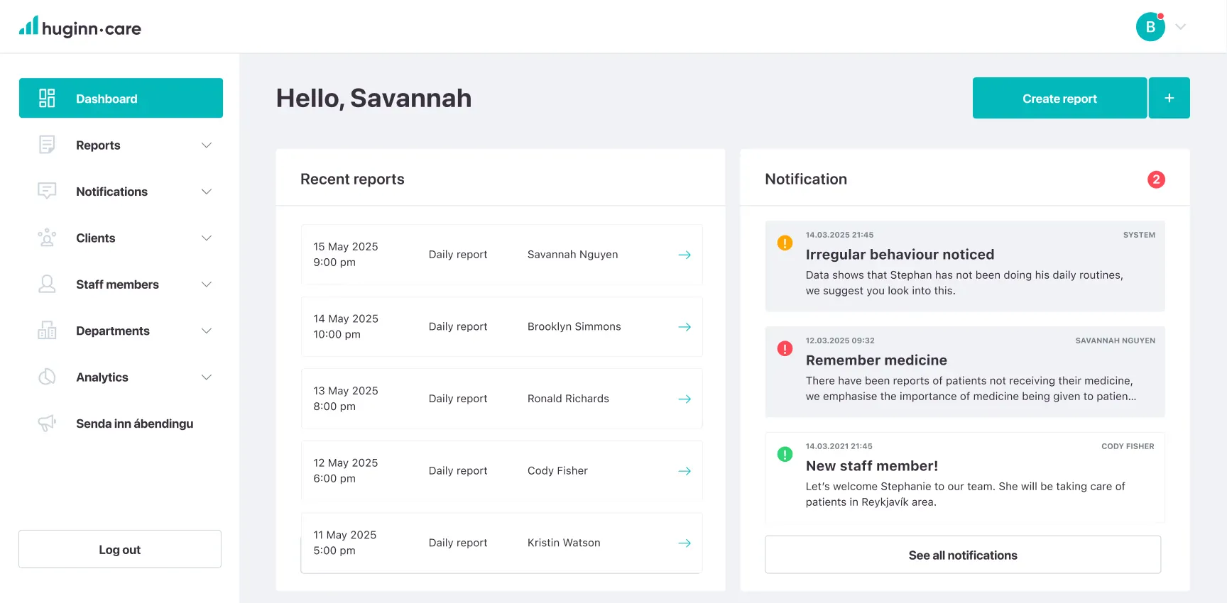 Huginn Care gives us a clear overview of our residents’ daily lives, all in one place. It makes it easy to log, track, and monitor each resident’s progress over time, so we can better understand their needs and provide more consistent care.